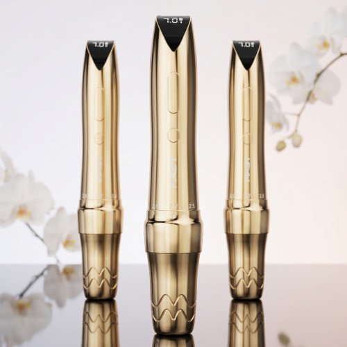 - Регульований хід: Перемінна довжина ходу (2,2/2,5/2,7/2,9/3,2 мм) дозволяє налаштувати машинку для різних потреб PMU: від ніжних губ до натуральних брів і невеликих татуювань.